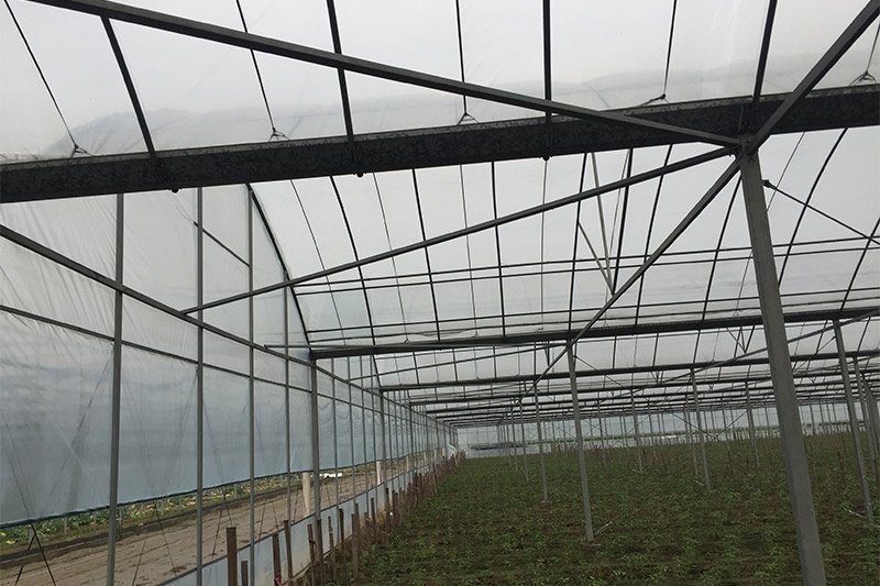 該產(chǎn)品由基礎(chǔ)、框架立柱,頂部拱管三大部分組成。點(diǎn)式獨(dú)立基礎(chǔ),使大棚根基牢固;立柱采用熱鍍鋅方管,大大增強(qiáng)抗風(fēng)抗雪強(qiáng)度;頂部由熱浸鍍鋅鋼管排列成平滑圓弧形,牢固兼美觀。同時(shí)天溝采用2mm厚熱鍍鋅板冷彎成型,容量大,排水及時(shí);頂部天溝處和大棚四周均設(shè)置搖膜通風(fēng)系統(tǒng),是大棚內(nèi)部氣流通暢。此產(chǎn)品可根據(jù)需要實(shí)現(xiàn)相關(guān)配套設(shè)施,以便達(dá)到更理想的效果,如外遮陽(yáng)系統(tǒng)、內(nèi)遮陽(yáng)保溫系統(tǒng)、降溫系統(tǒng)、加溫系統(tǒng)、噴滴灌系統(tǒng)等。