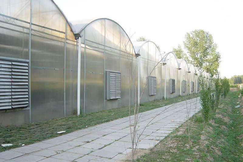 PC板溫室可做成拱形或者尖頂,該溫室的覆蓋材料為聚碳酸酯中空板(PC陽光板),與其他覆蓋材料相比,具有采光好、保暖、請便、強度高、防結露、抗沖擊、阻燃、經濟耐用等優點,該板的向陽面具有放紫外線圖層,抗老化性能達10年。溫室使用壽命長,外形美觀漂亮,保溫效果好,冬季可節省加熱能耗。