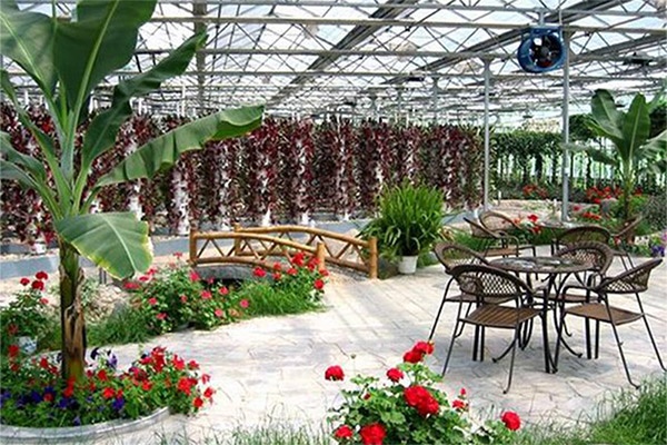 溫室主體骨架采用內外熱浸鍍鋅鋼管及鋼板和溫室專用鋁合金型材,專用鋁箔封口,緊固件、連接件及抗老化橡膠密封條等優質材料,使用壽命大于10年。溫室頂部及四周側墻采用4mm國產優質浮法玻璃,玻璃透光率為88%。溫室側面可設置推拉窗,頂部可設置雙向交錯開空窗,通風率為27%,齒輪齒條副傳動??筛鶕蛻粢蠹友b電動拉幕系統、內遮陽系統、濕簾-風機降溫系統、加溫系統、噴灌系統、配電系統、通風系統、智能控制等。總之,整個產品的設計是利用現代化的手段實現對溫室內部溫度、相對濕度、自動控制,為作物創造適宜的生長環境;同事降低運行成本,提高管理效率實現高品質、高效益。主要用于科研實驗、名優花卉種植、觀光旅游、生態休閑、農業育苗等。