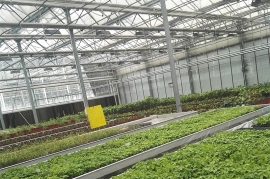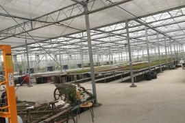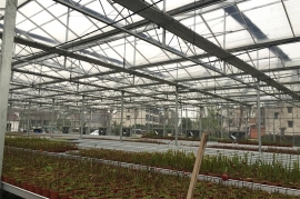 文洛式玻璃溫室為一跨三尖頂、雙坡面小屋頂桁架結構、多雨槽、具有美觀、吊掛能力強、透光性好、空間大、機械性能強等優點。