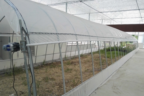 連棟薄膜溫室配備外遮陽系統,內遮陽系統,棚內有小的玻璃溫室,單體大棚,風機濕簾降溫系統,水培系統,智能控制系統!